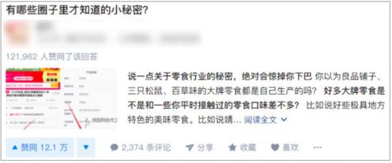 再比如「有哪些圈子里才知道的小秘密」这个问题下的一个回答,是讲零食行业的一个小秘密。