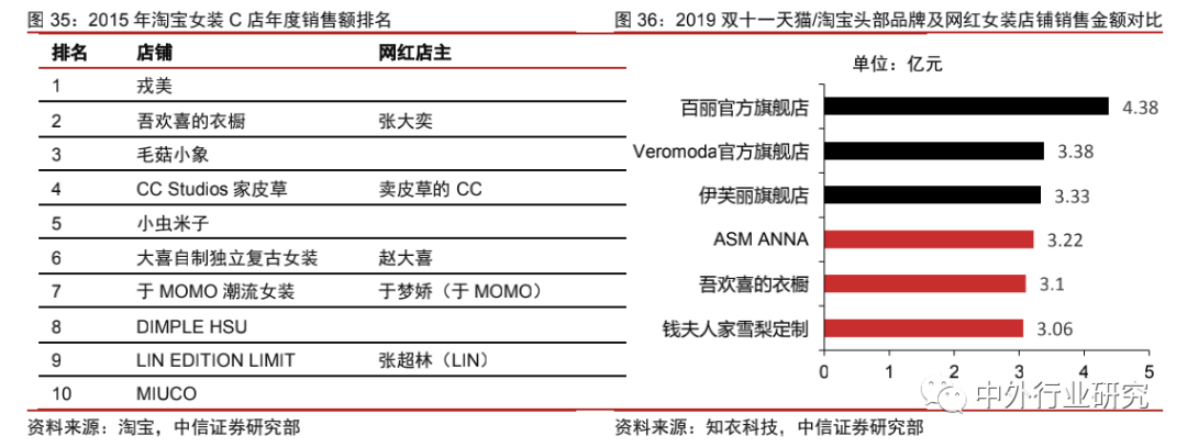 中美均涌现出一系列成功实现电商品牌转型的网红,主要集中于美妆、服饰等时尚领域。