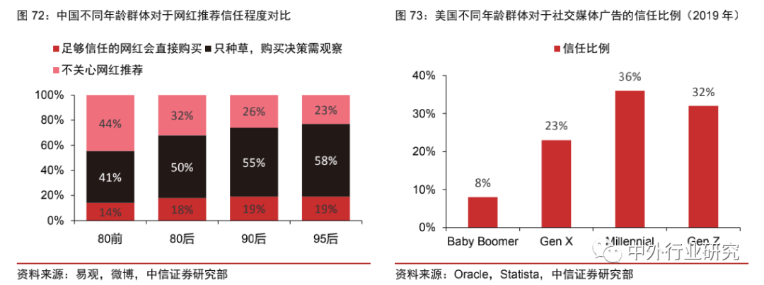 基于高渗透率和信任度,Z世代群体更倾向于参与网红经济,成为天然客群。