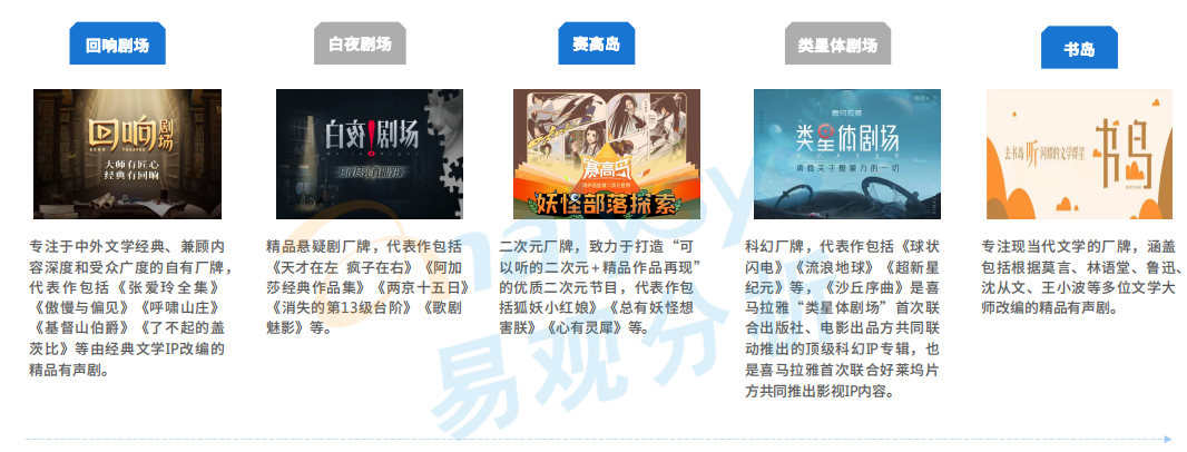 头部音频平台如喜马拉雅凭借自身的技术、团队、资金等优势发力有声剧赛道,带领音频市场的有声剧生态逐渐走向专业化、精品化,为文化IP的开发树立起全新“路标”。