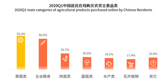 用户主要购买果蔬与粮食,其他品类仍有上行空间。
